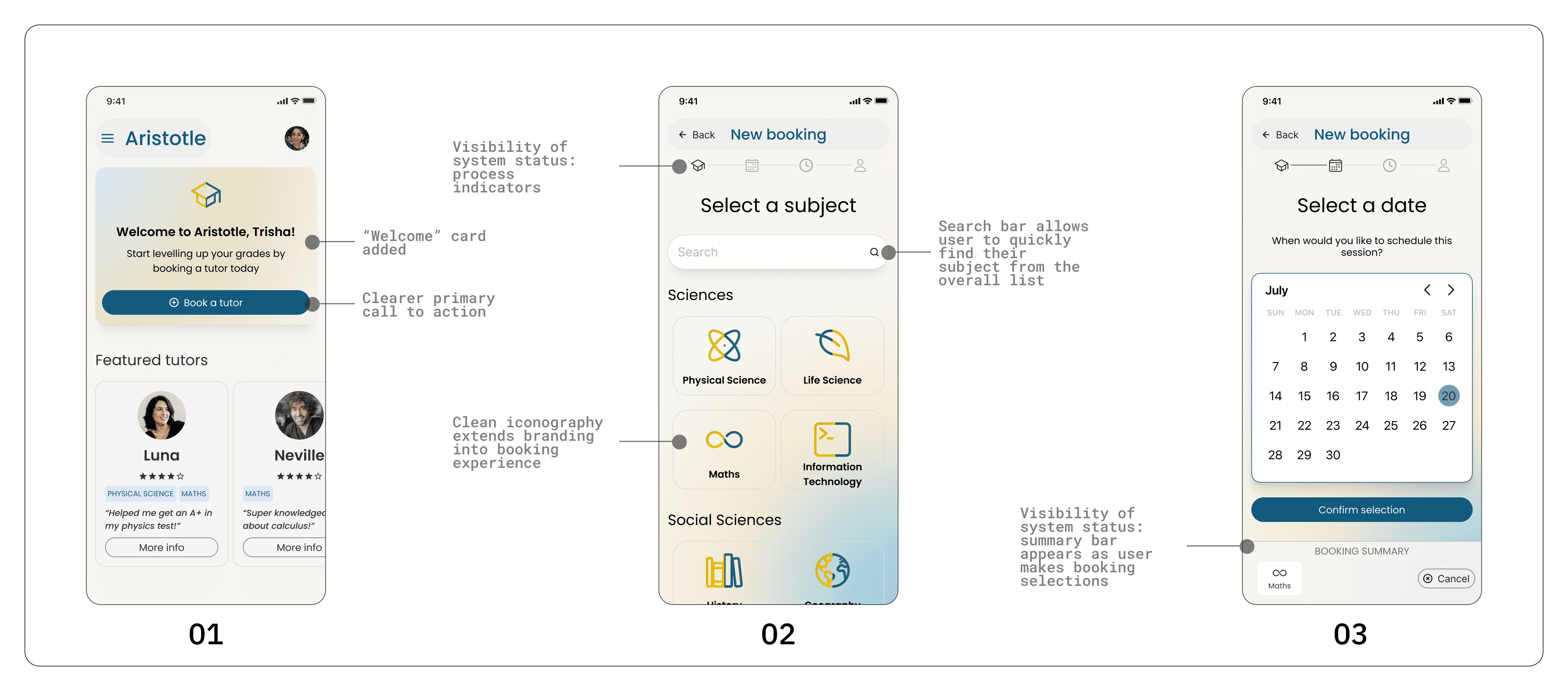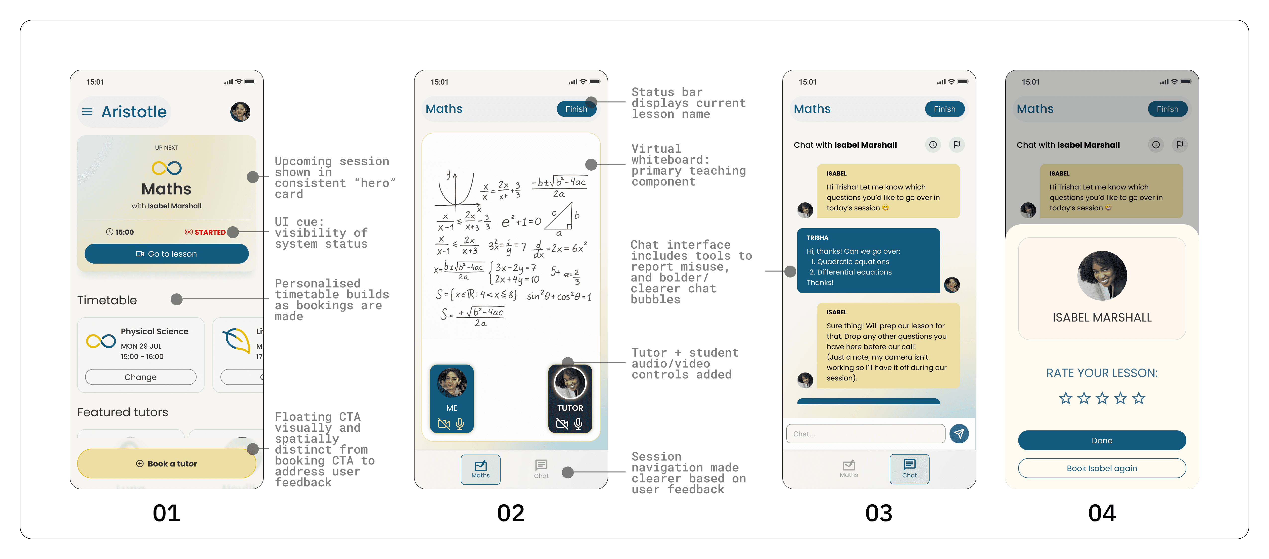 The goal of this case study was to produce a high-fidelity prototype simulating the booking and tutor interaction flows.