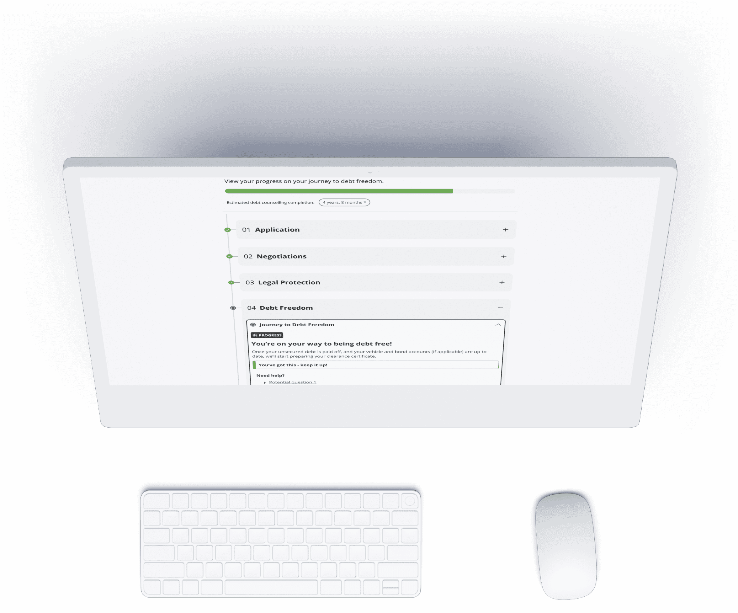 Debt counselling clients need a clear way to track their progress because the process can feel confusing and uncertain. Without visibility into their journey, clients may lose motivation or trust. A simple progress tracker can boost engagement and confidence.