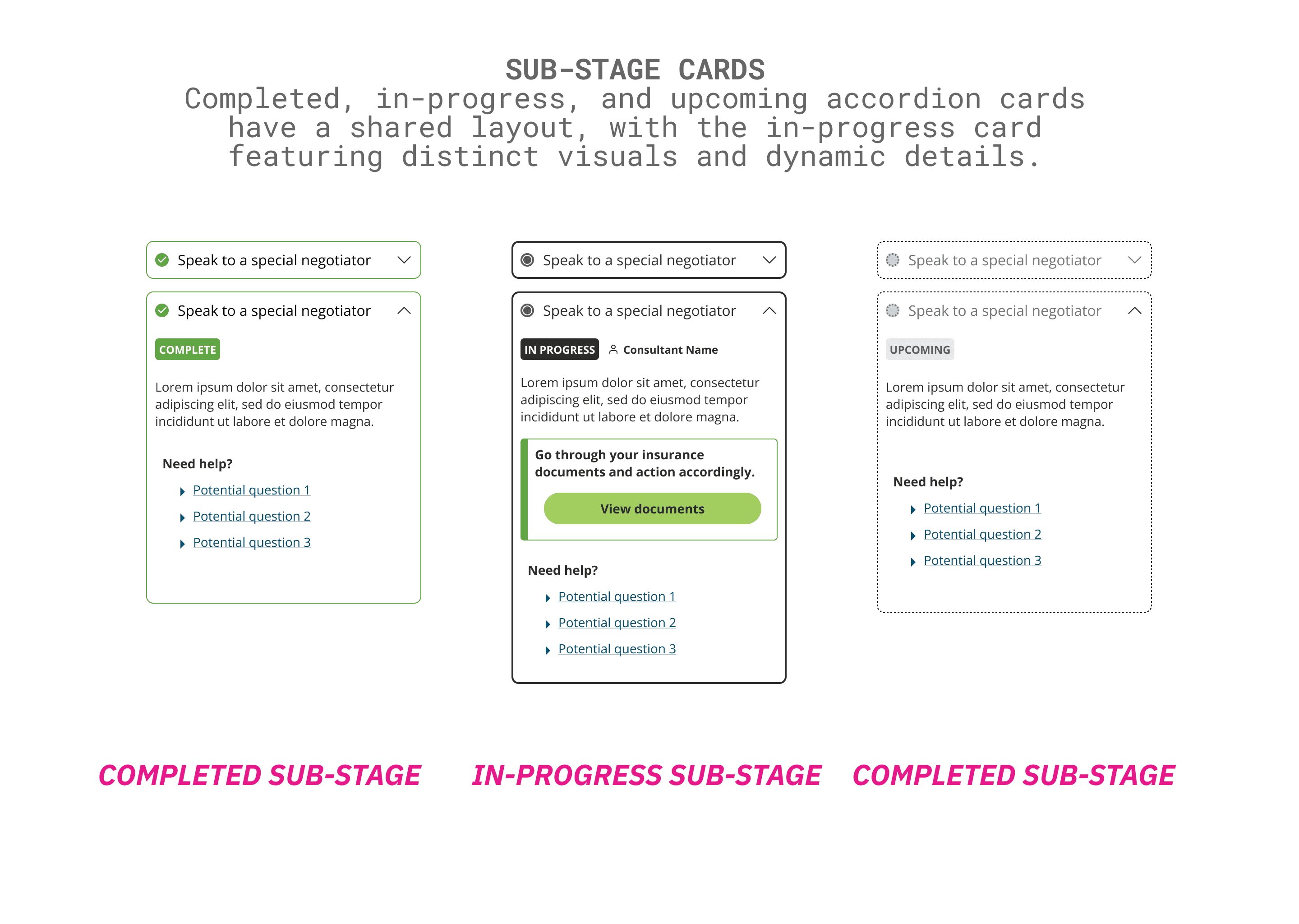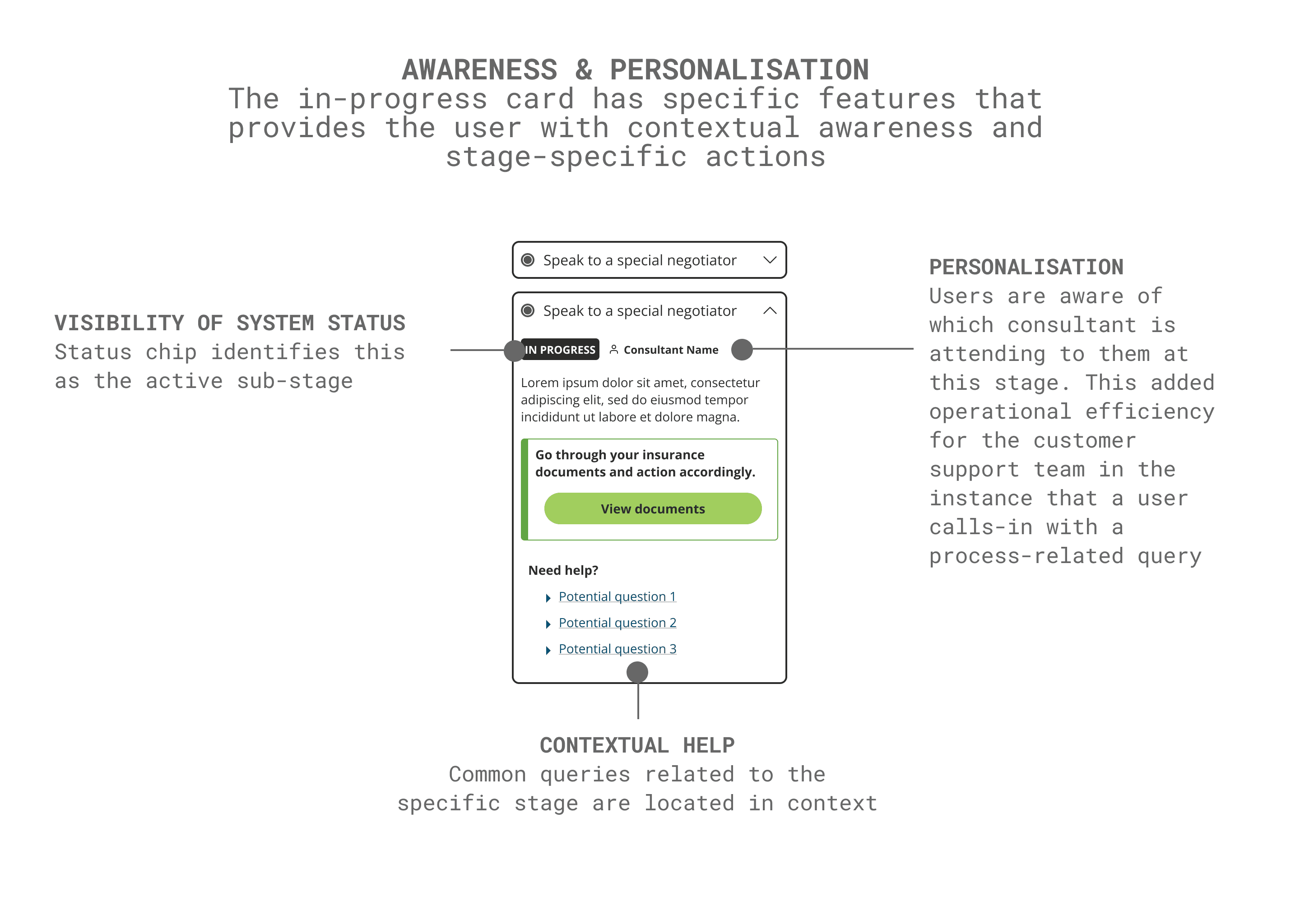 Simplifying complex, emotionally loaded processes demanded careful step-by-step evaluation to create an experience that supports rather than overwhelms users. Two UX principles guided this approach: