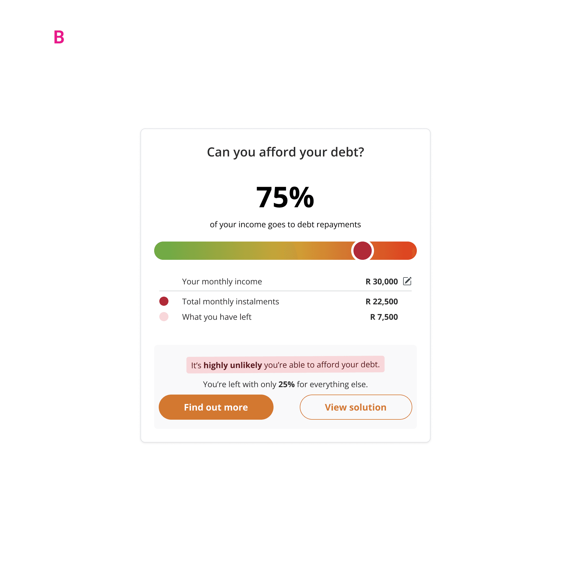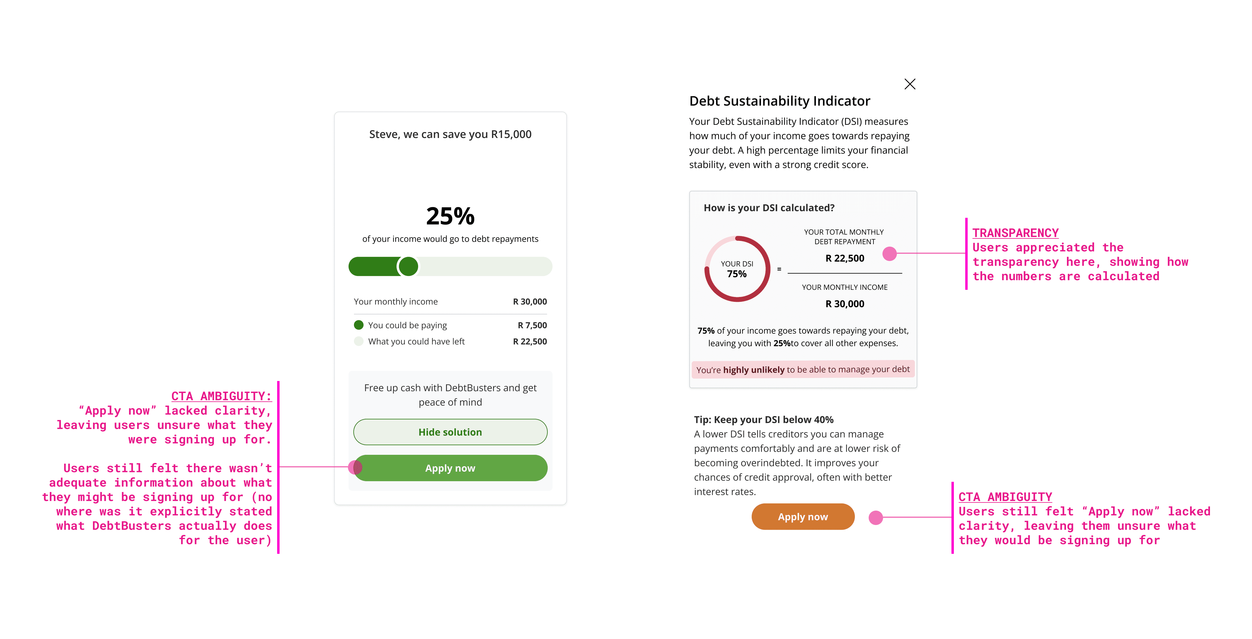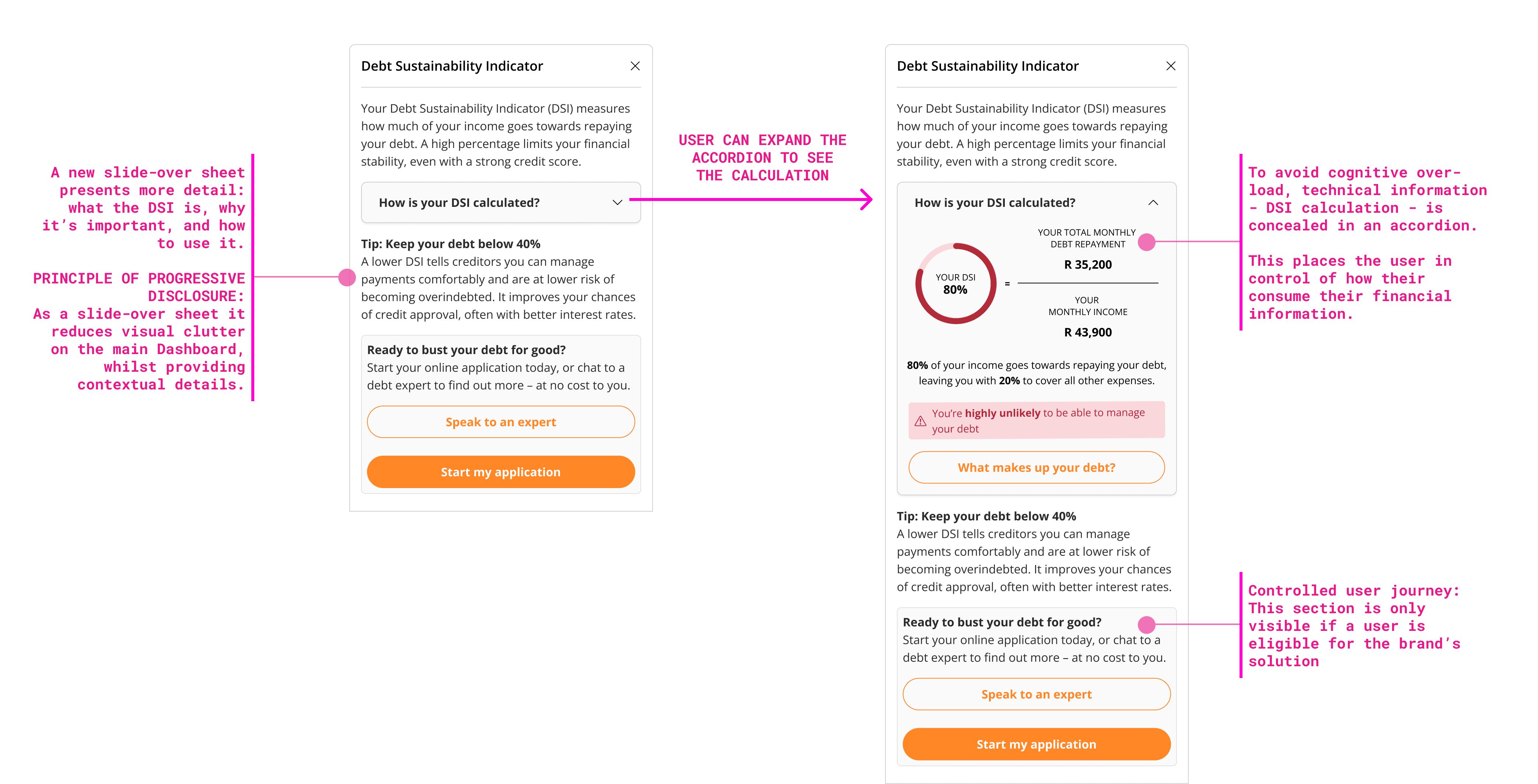 Coupled with an additional data point (the personalised quote based on a series of factors from a users' credit profile), we can show the user their current situation, and how it can be improved using the DSI widget.