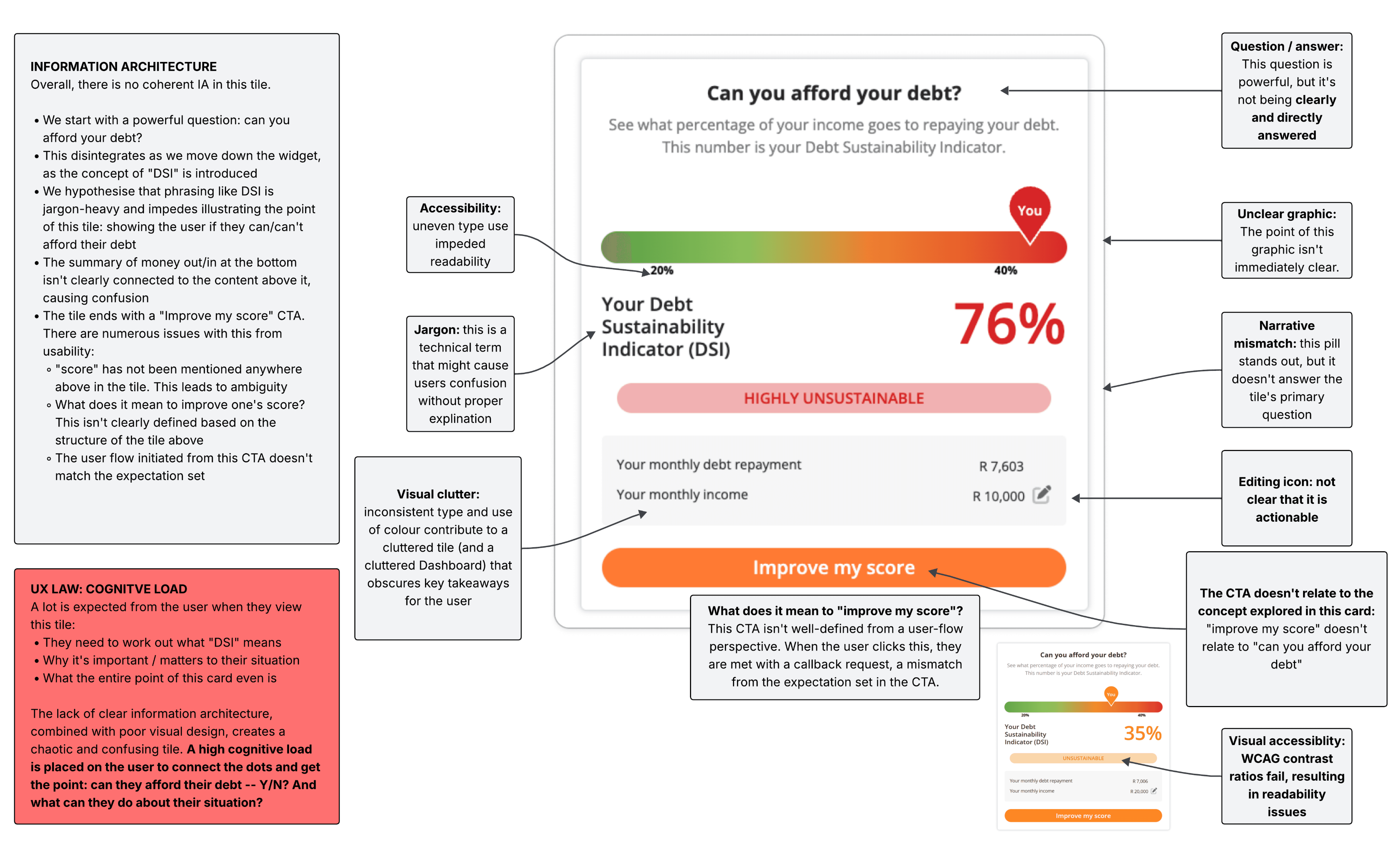 Visual clutter and accessibility issues: small type and failing colour contrast ratios impaired readability