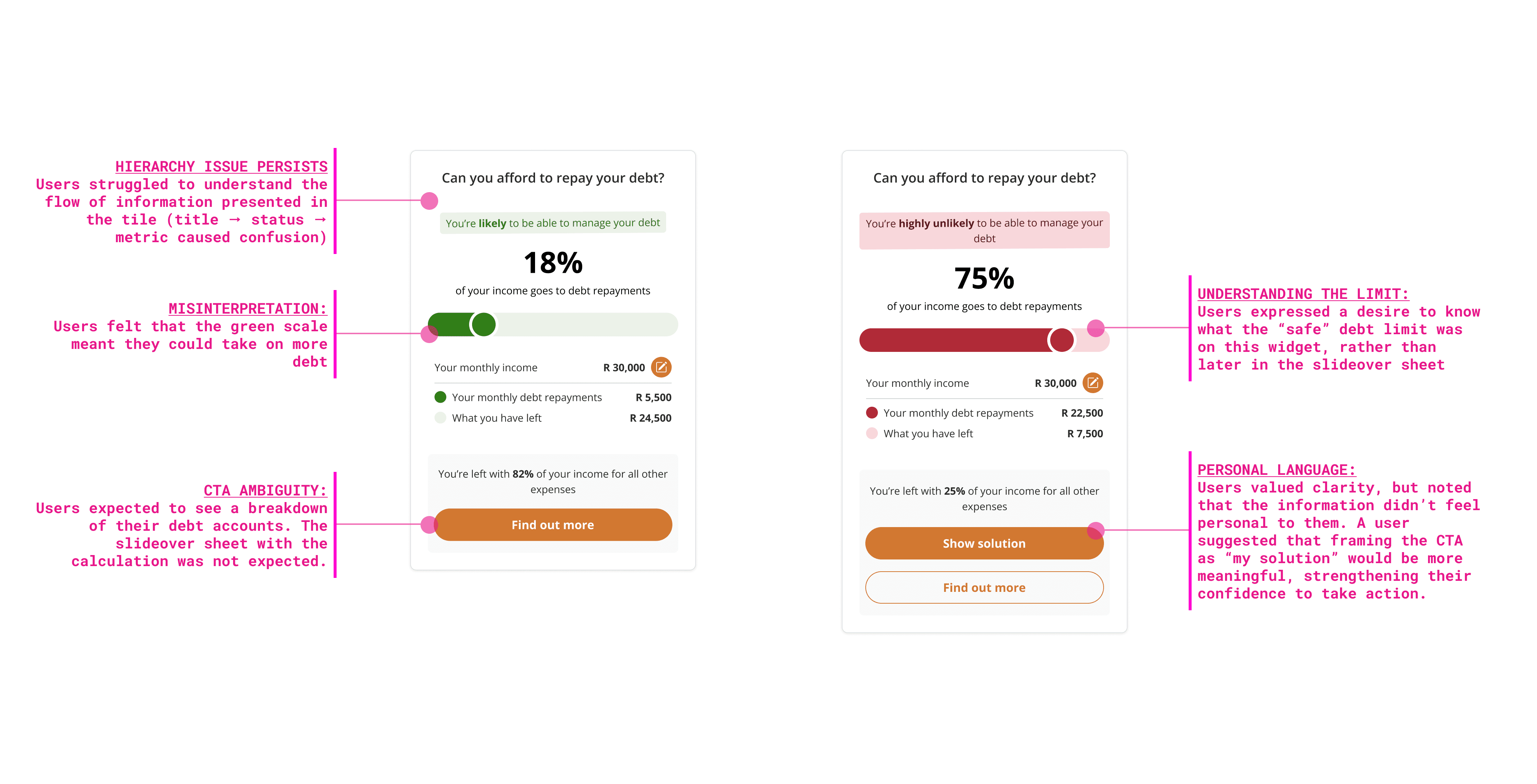 User interviews revealed the following usability issues:
